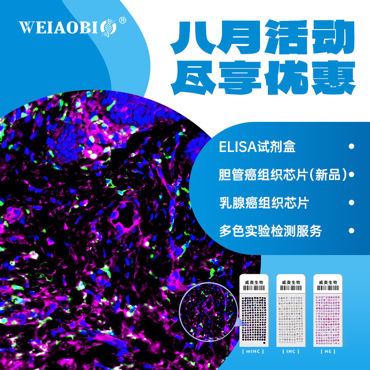 組織芯片、ELISA KIT、鏈霉親和素磁珠、蛋白純化試劑盒(磁珠法)、western整套產(chǎn)品(5種顏色的SDS-PAGE凝膠試劑盒、上層膠染料(遷移/不遷移)、快速轉(zhuǎn)膜液、快速封閉液、通用抗體稀釋液、免脫色考馬斯亮藍(lán)染色液等)、免疫組化整套試劑(TSA試劑盒、IHC試劑盒、SABC試劑盒、HRP多聚體二抗等)以及常用緩沖液。